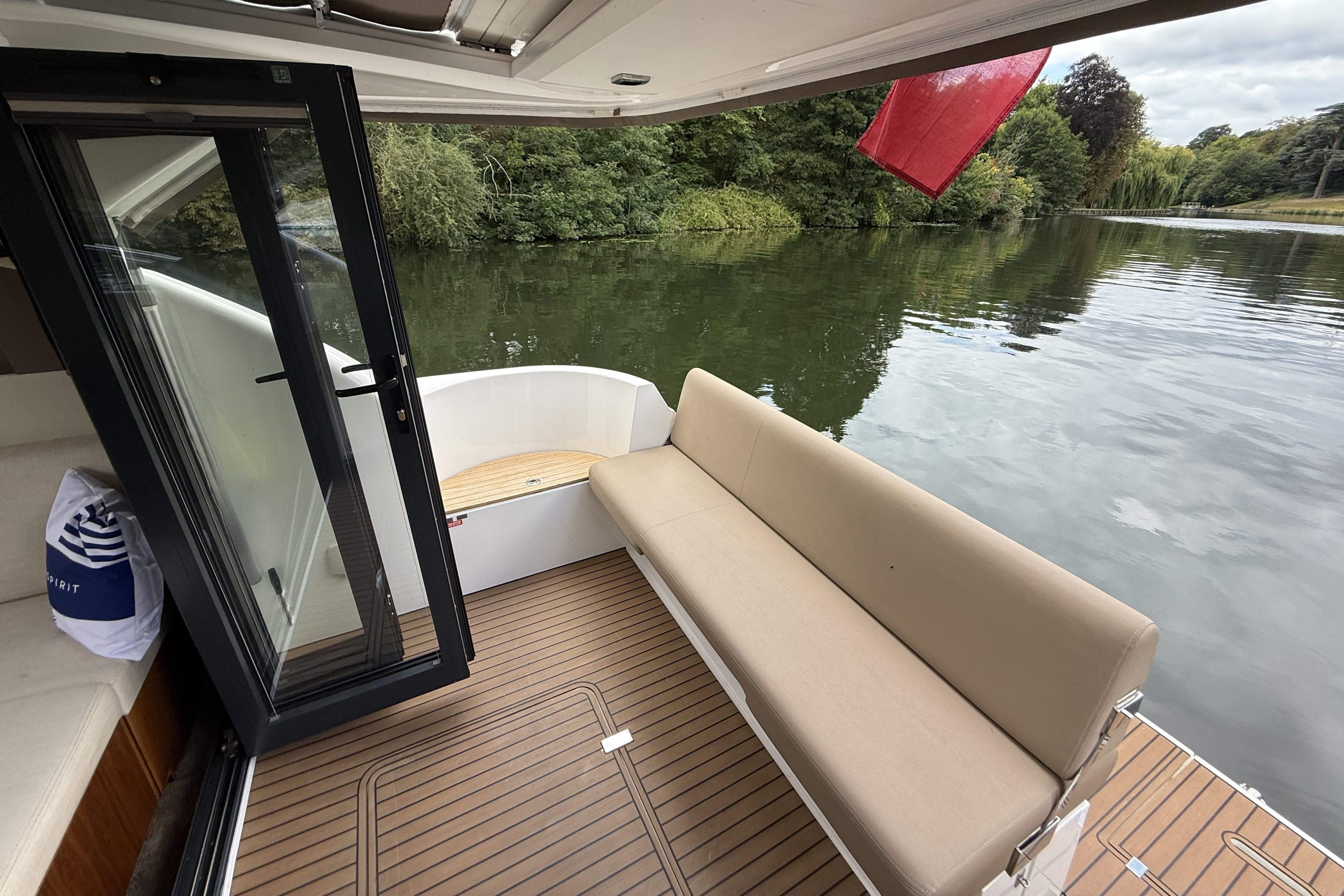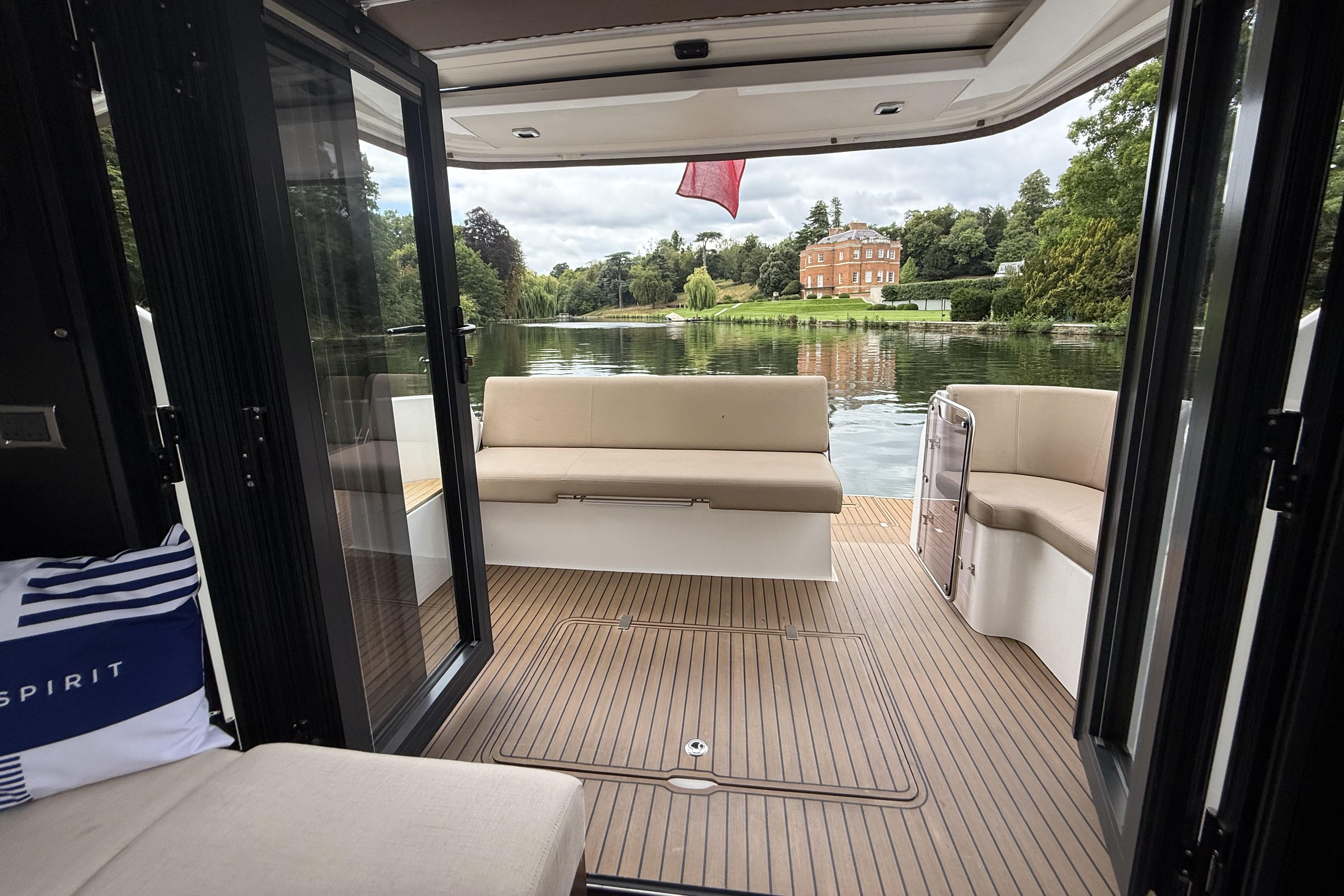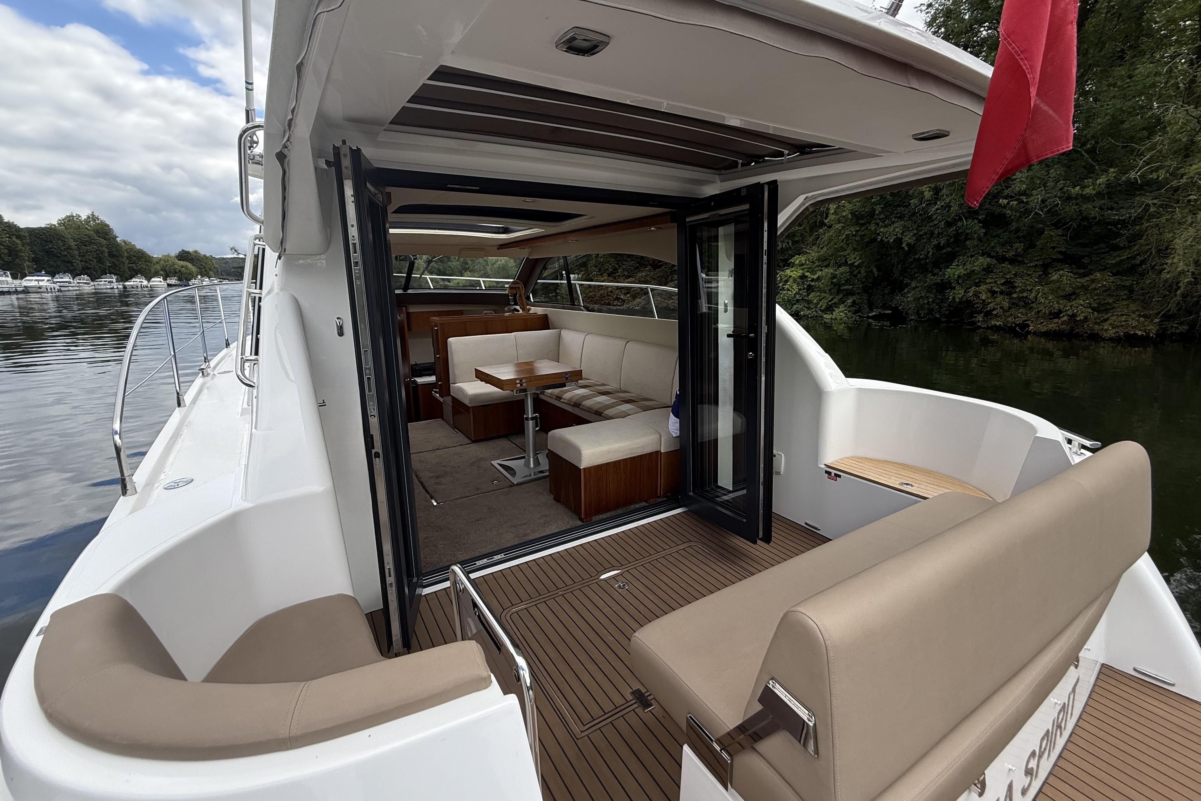 - The transom seats slide and pivot to offer the choice of forward or rear facing views and the cockpit extension enables you to enjoy dining or lazing in the sun.