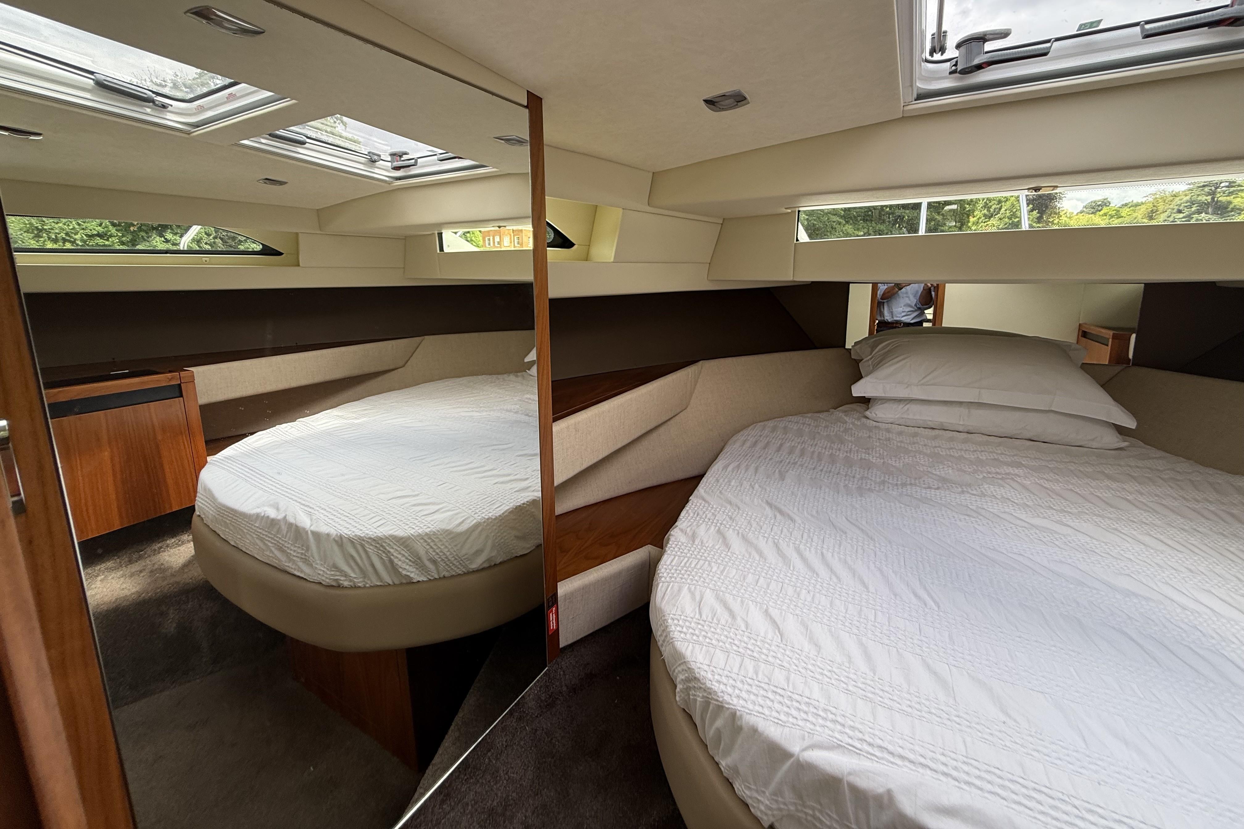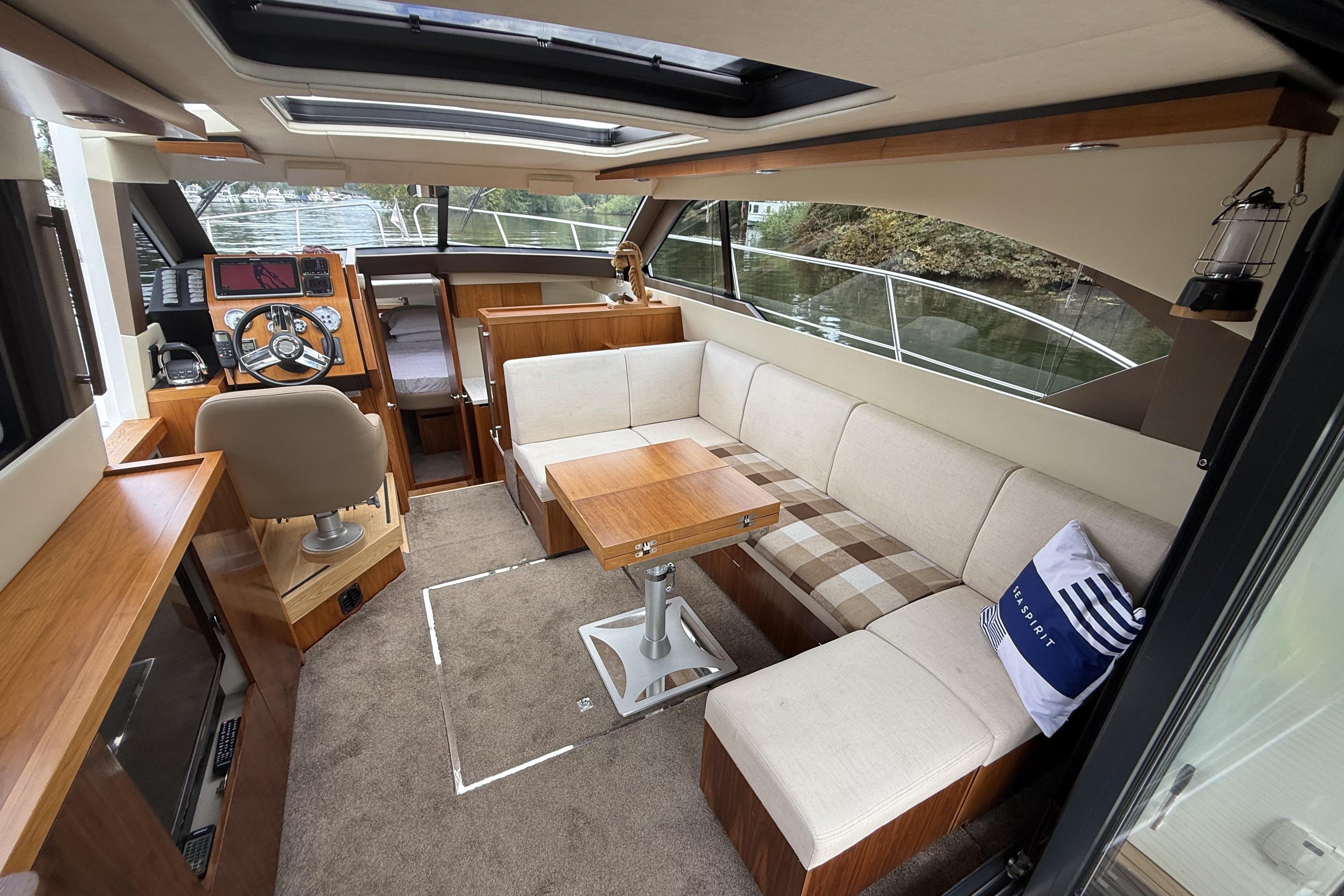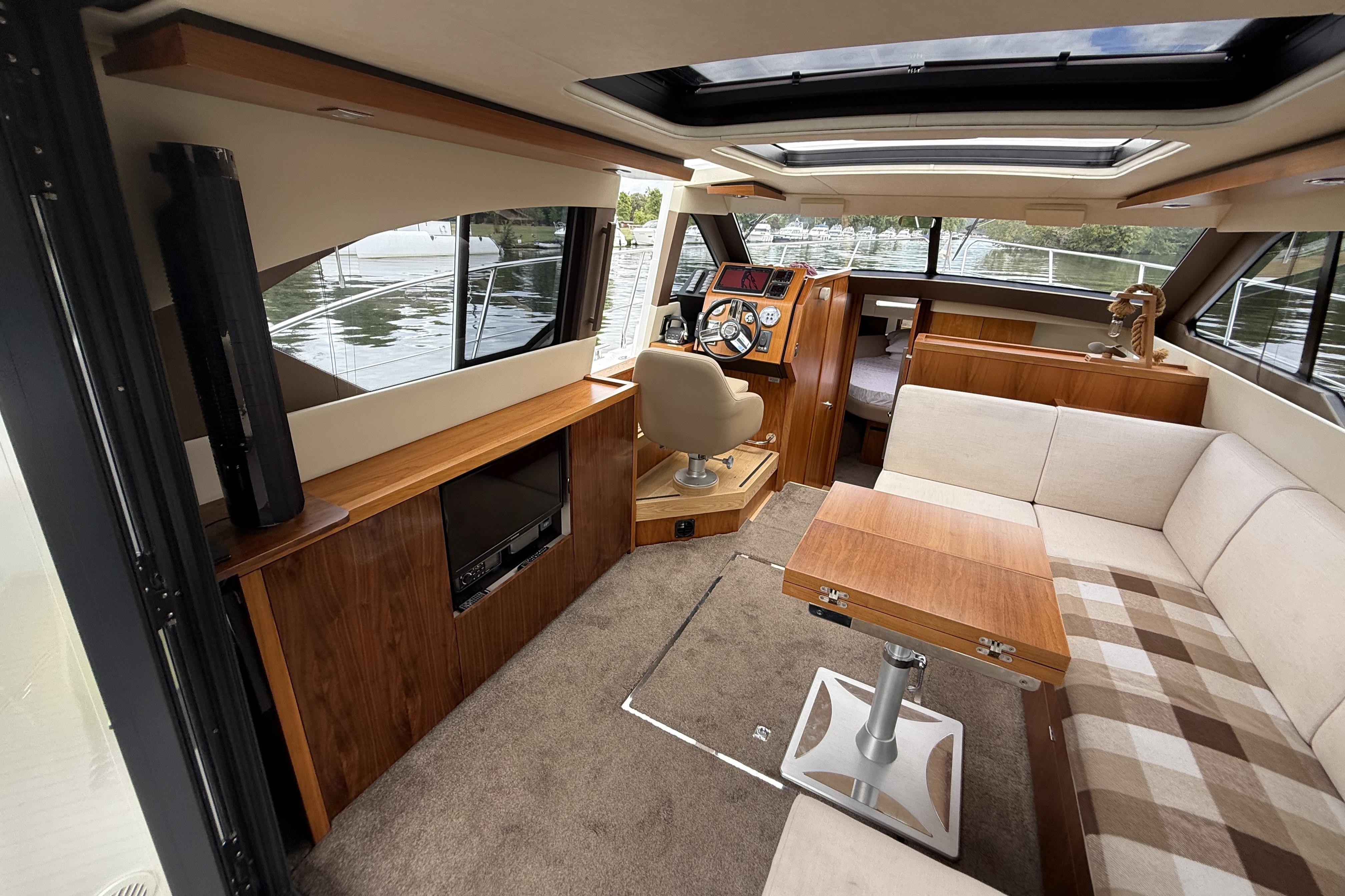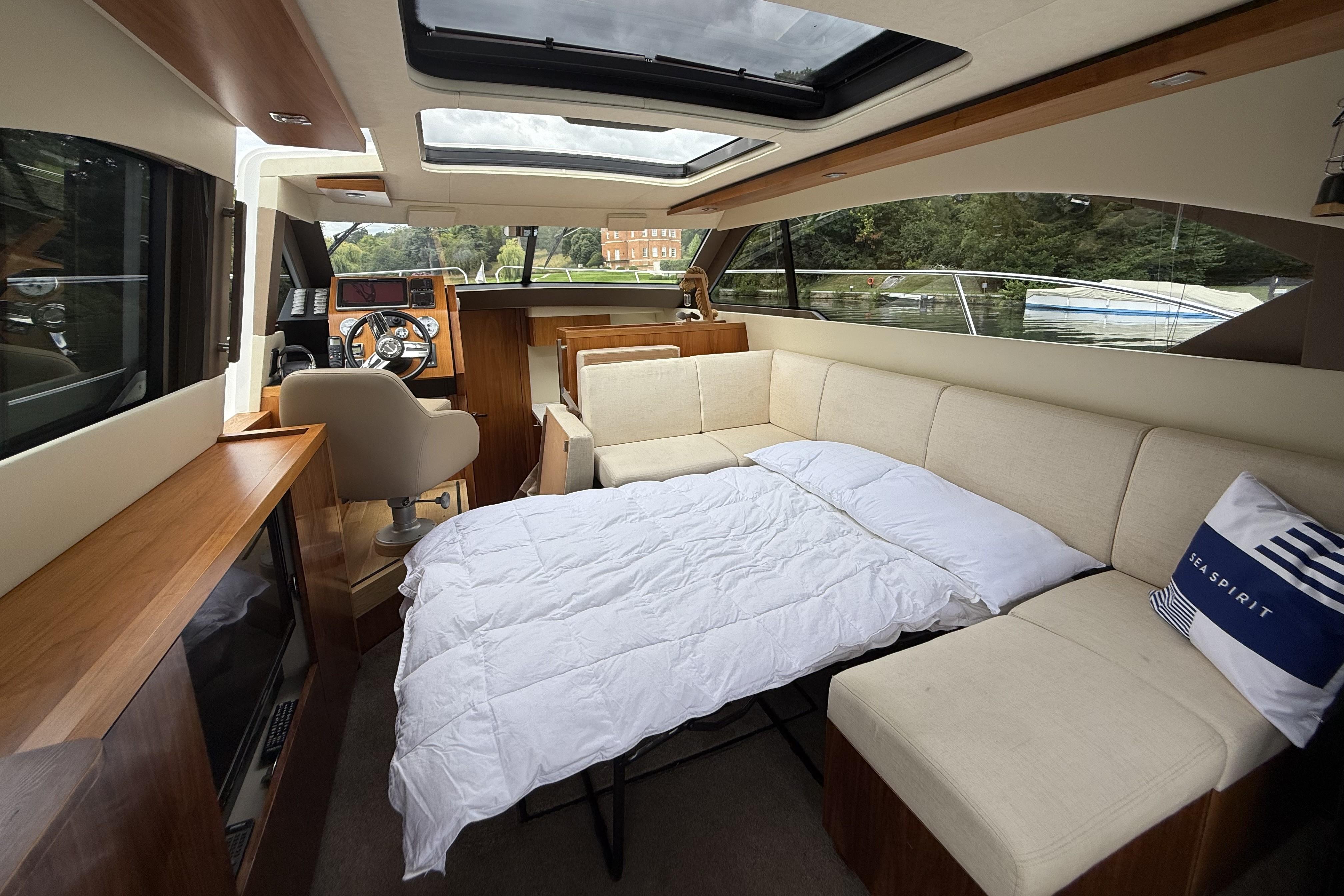 - Saloon with u shaped seating area (starboard) and built in side board (port side) including 'cocktail' cabinet, integrated tv mount, and saloon table recess.