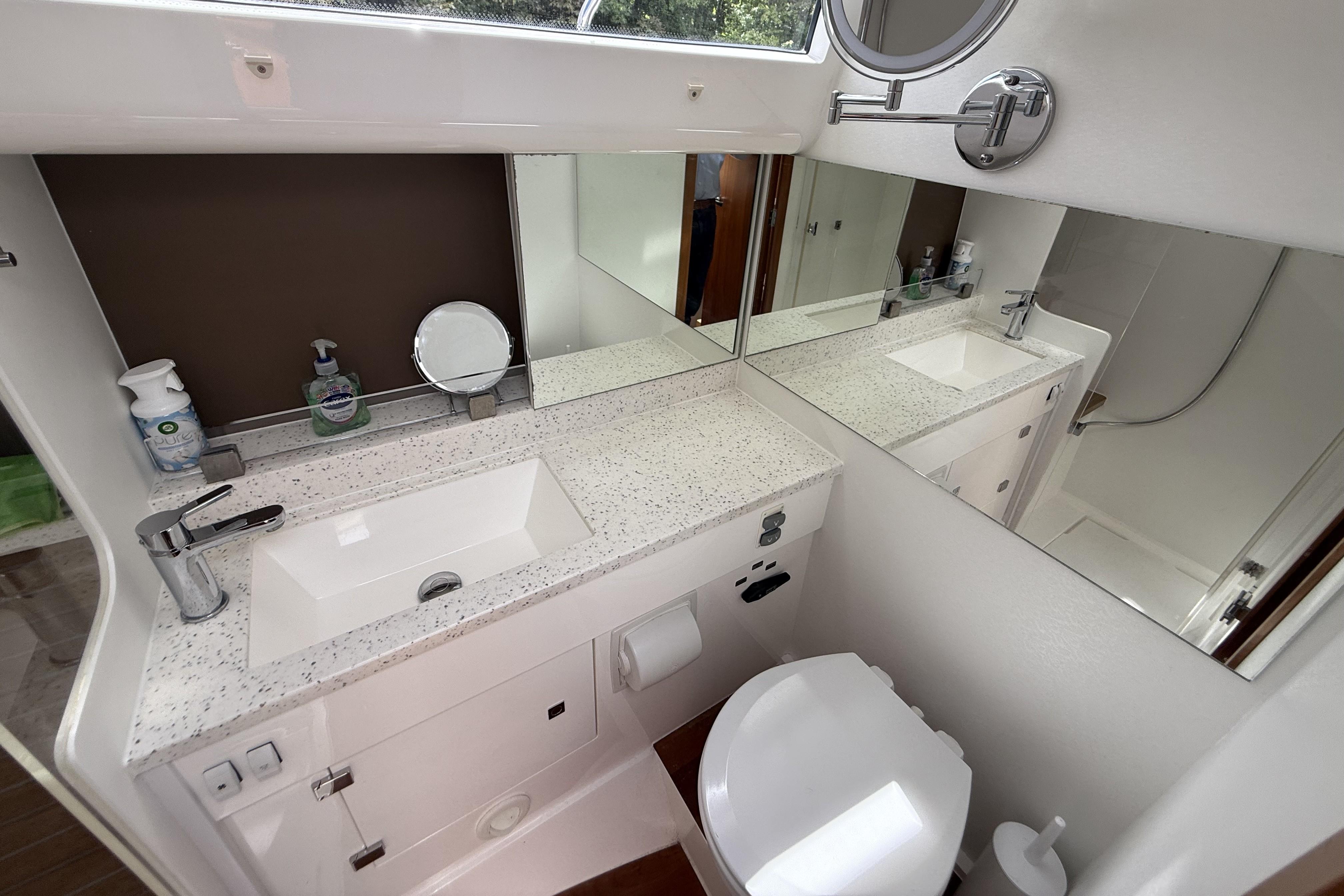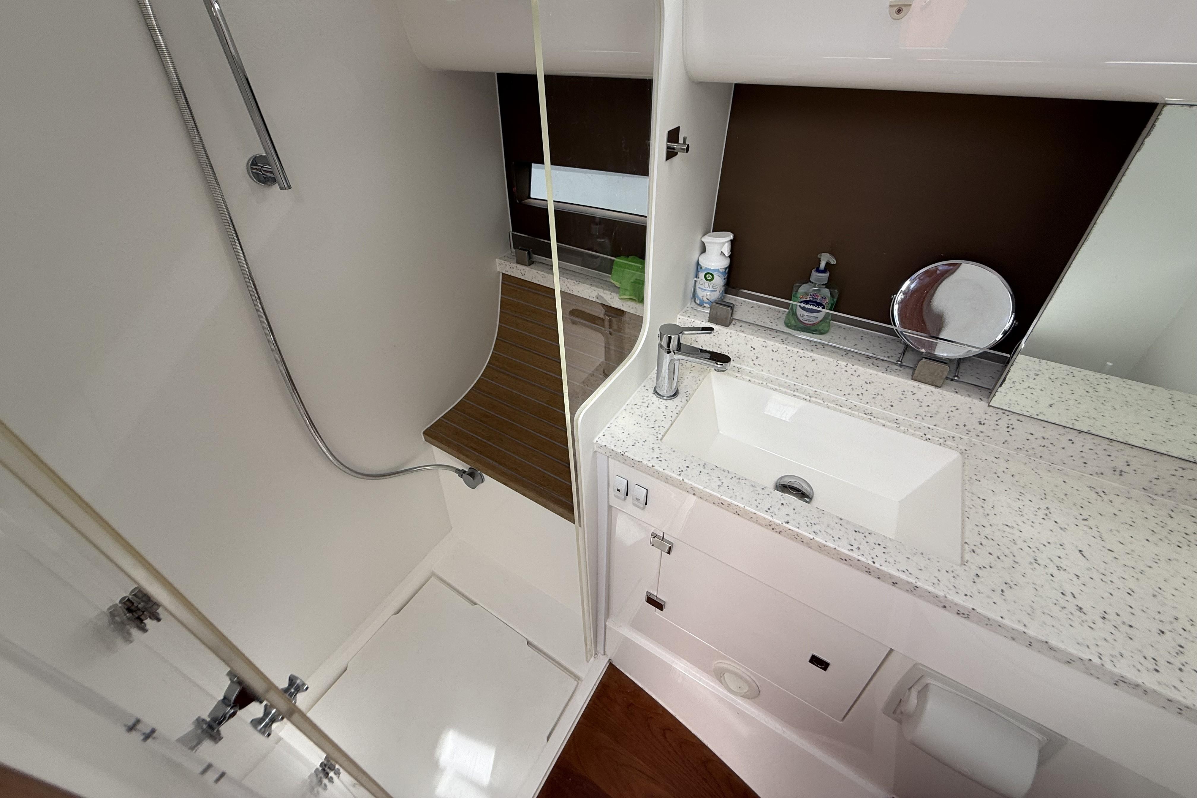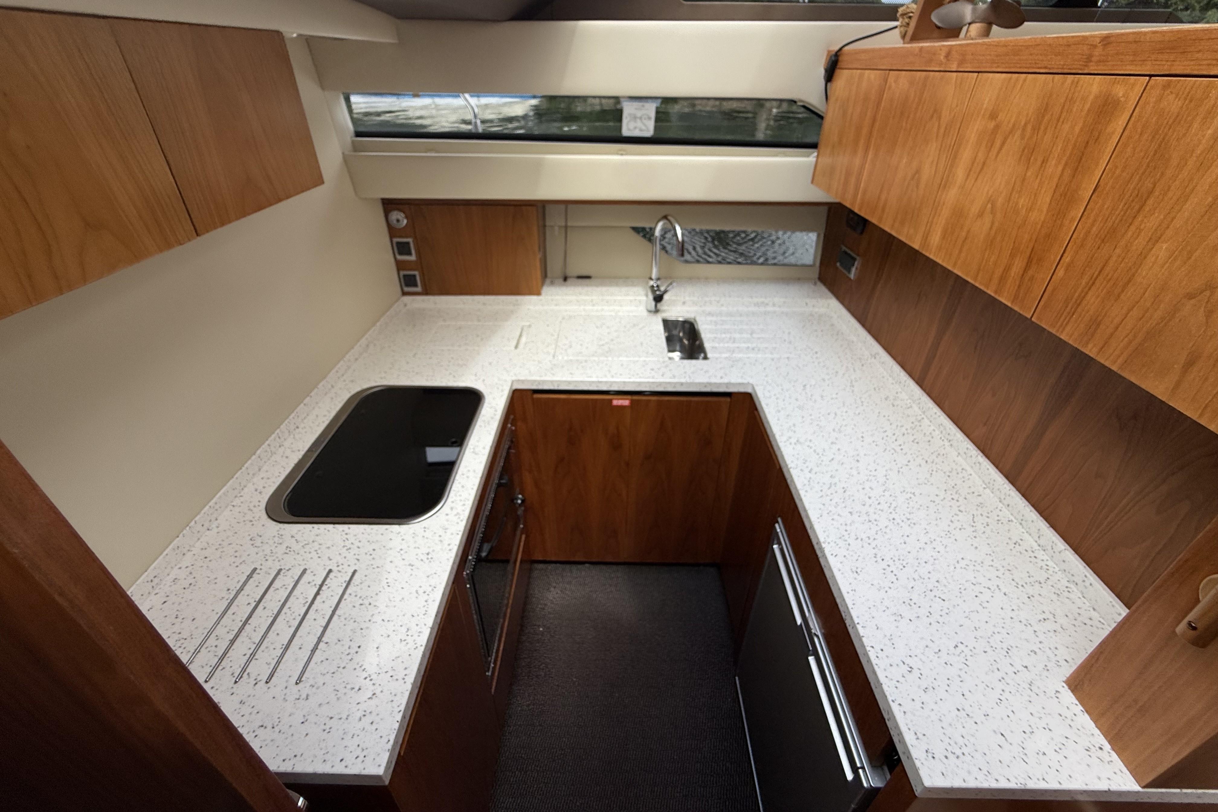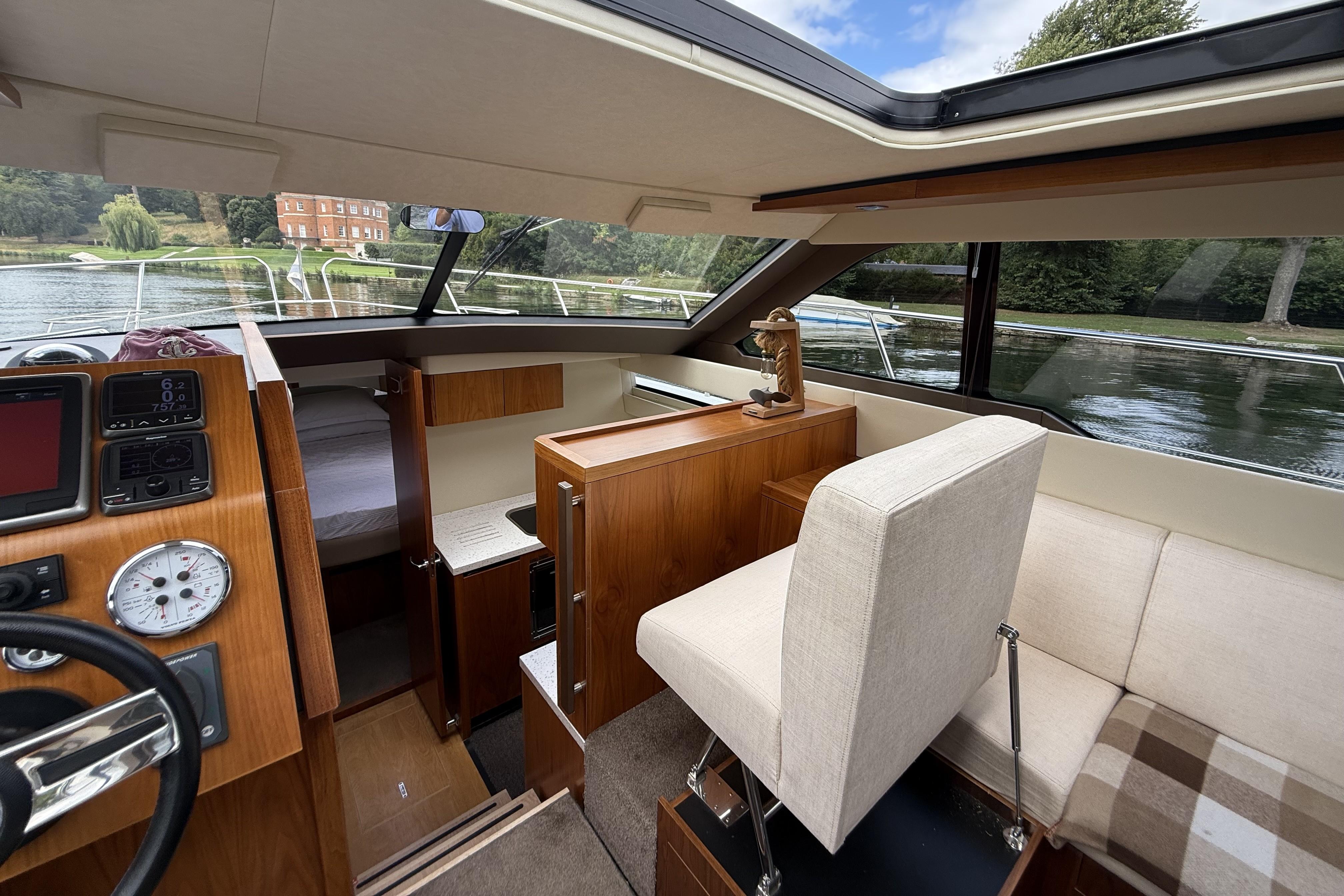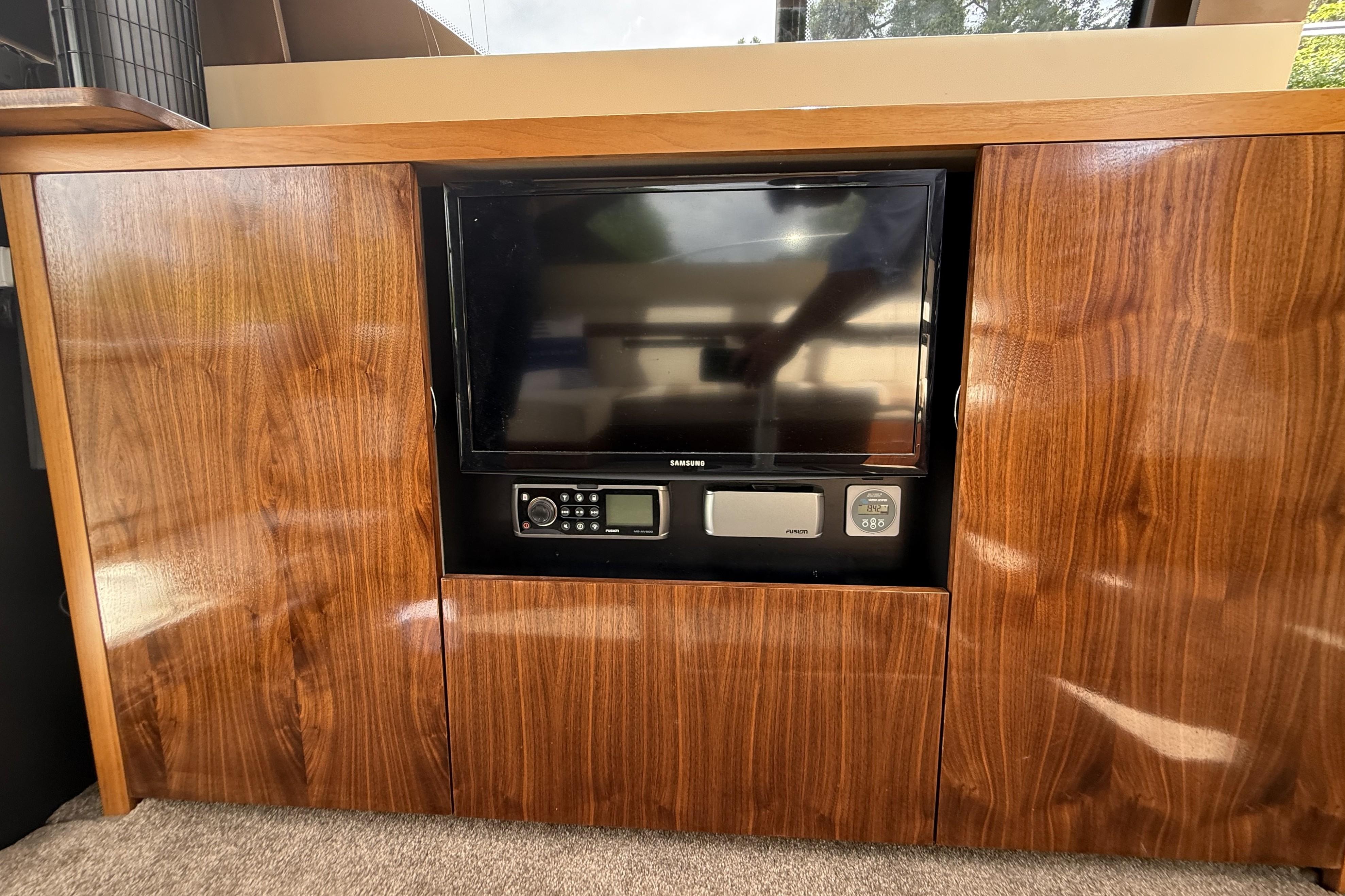 - Saloon with u shaped seating area (starboard) and built in side board (port side) including 'cocktail' cabinet, integrated tv mount, and saloon table recess.