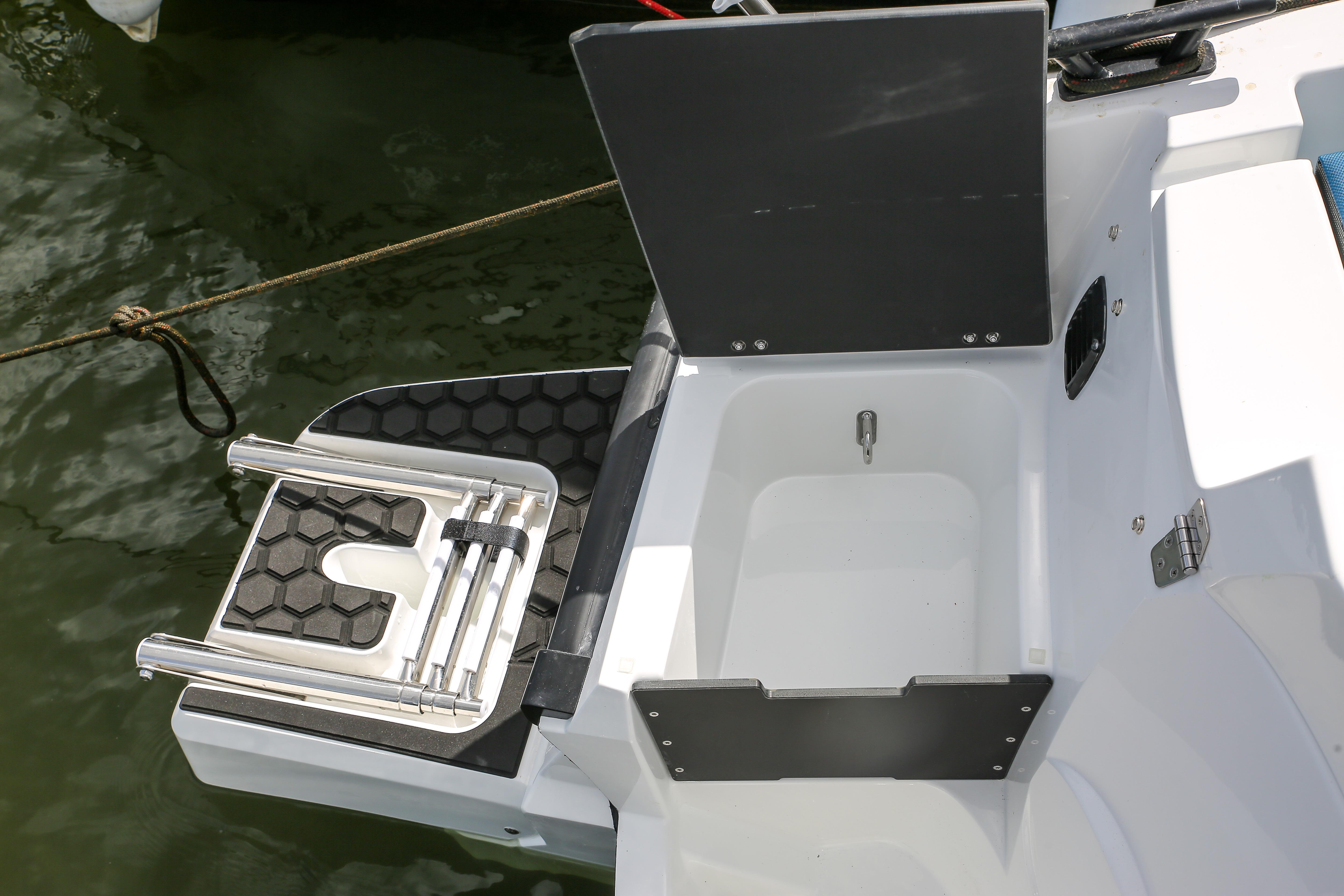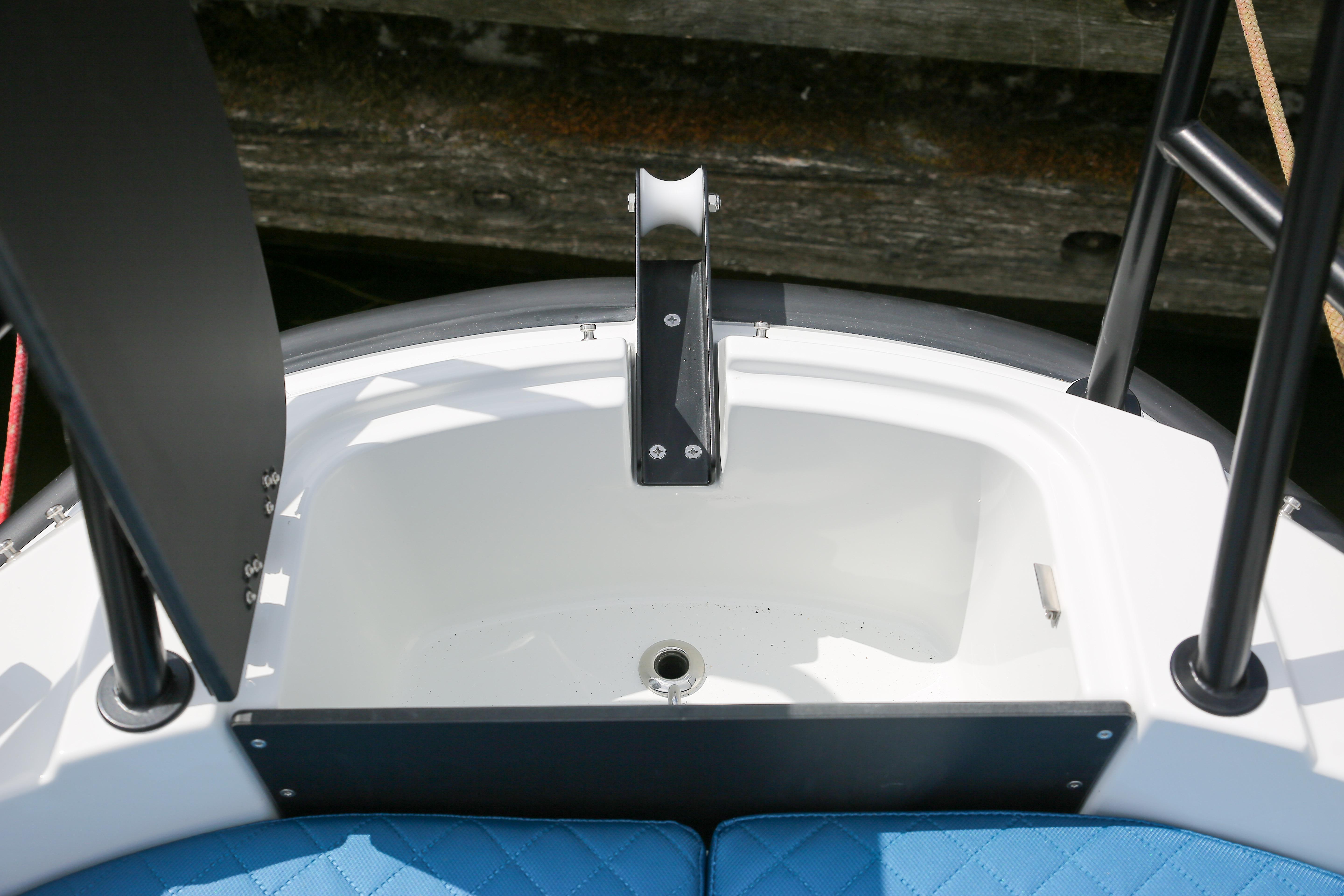 - Box for anchor and/or mooring lines in bow and stern