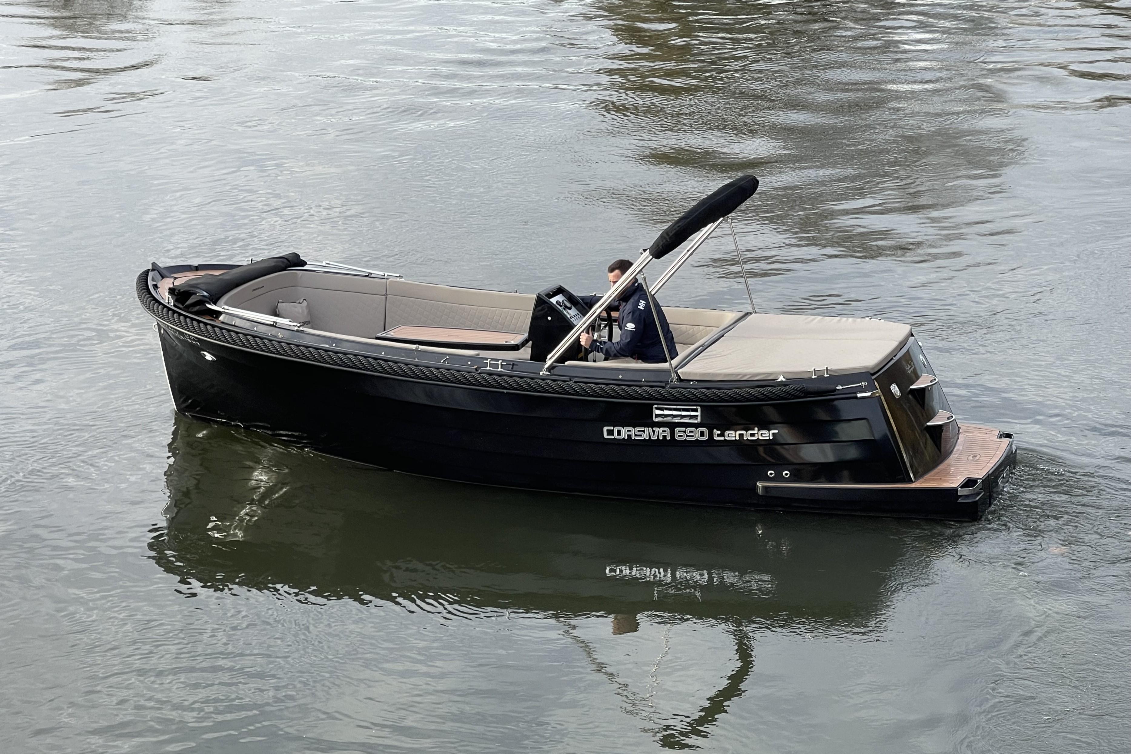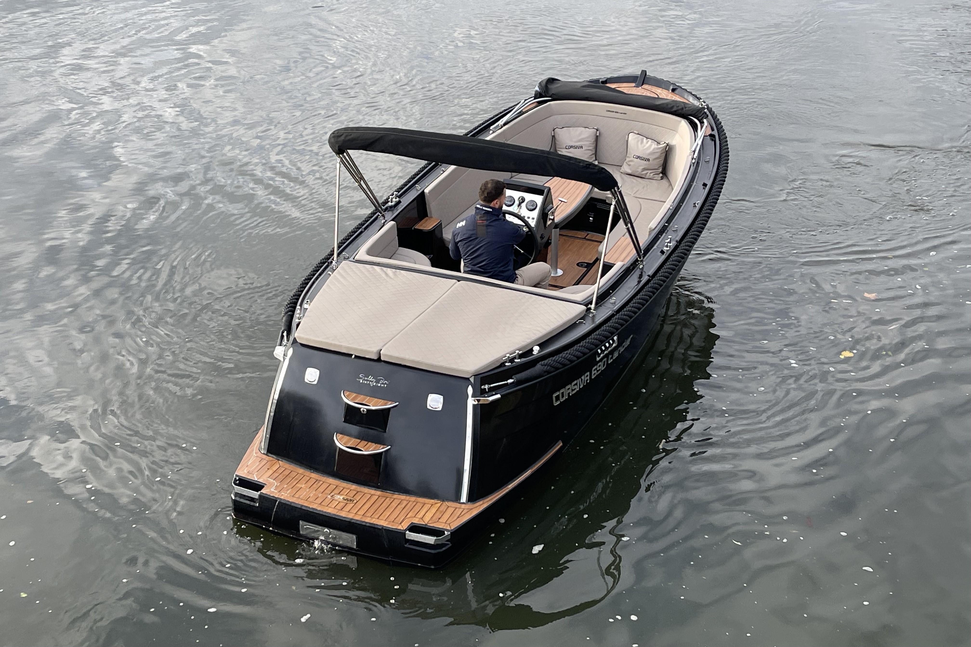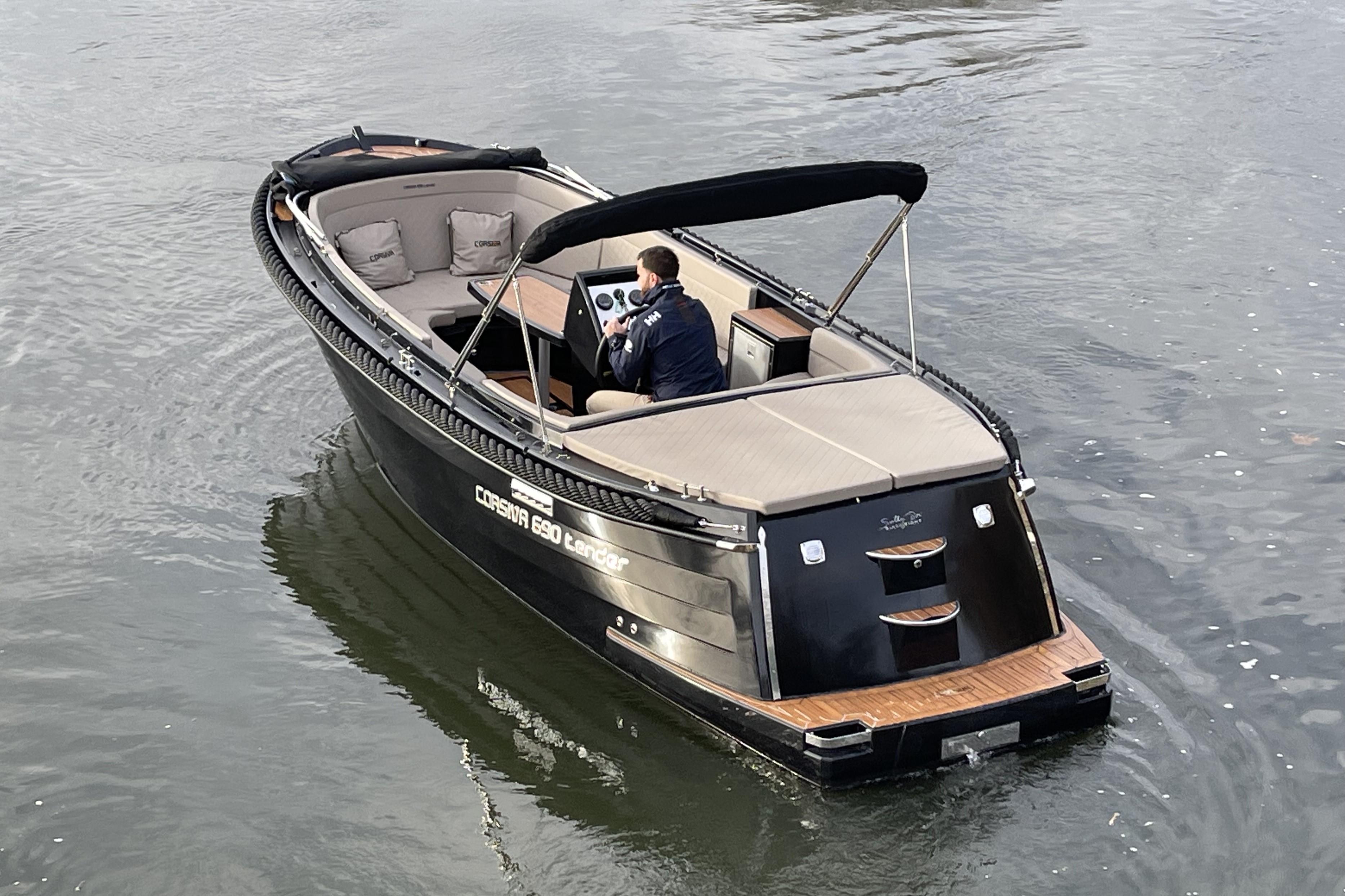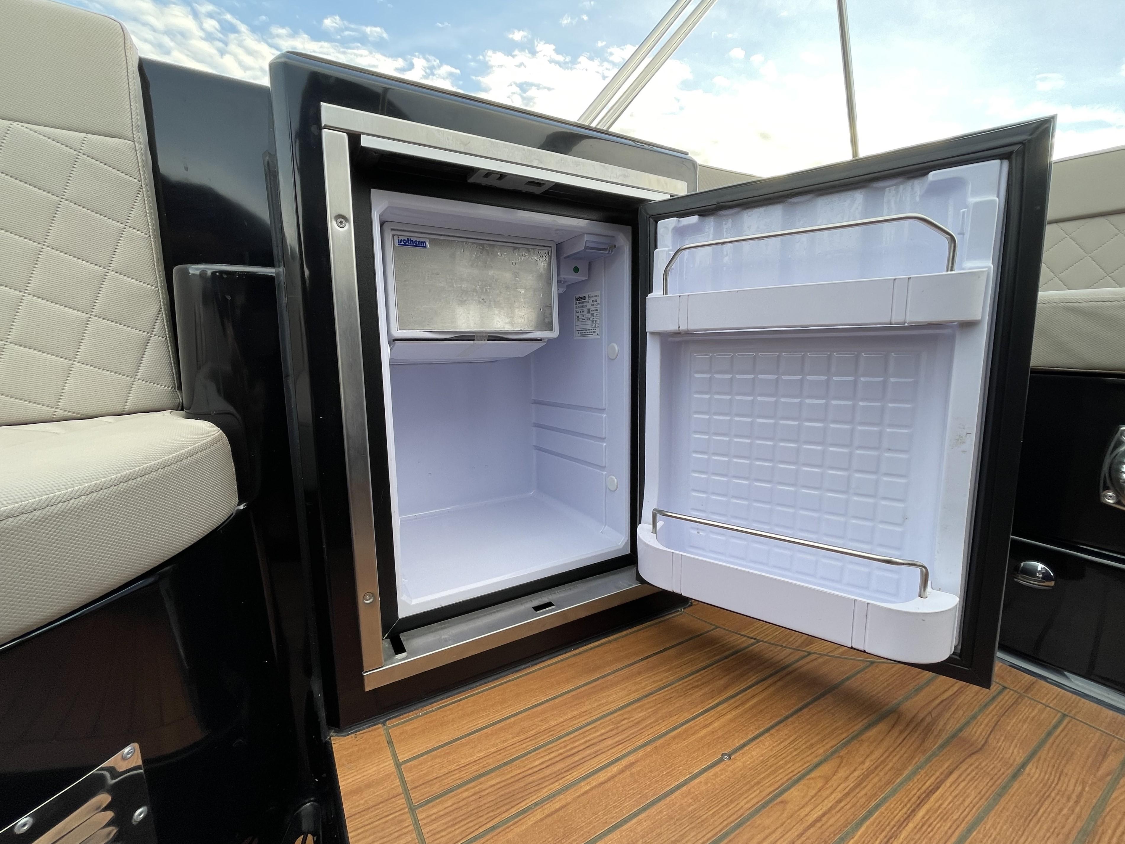 The Corsiva 690 benefits from a large cockpit, seating 9 in comfort. She has storage below all seats, there is also storage below the forward floor. The centre helm position allows you to move around her seamlessly. The cockpit has been fitted with teak effect flooring, low level lights, upgraded Diamante cushions (quilted) and a central table which is removeable.