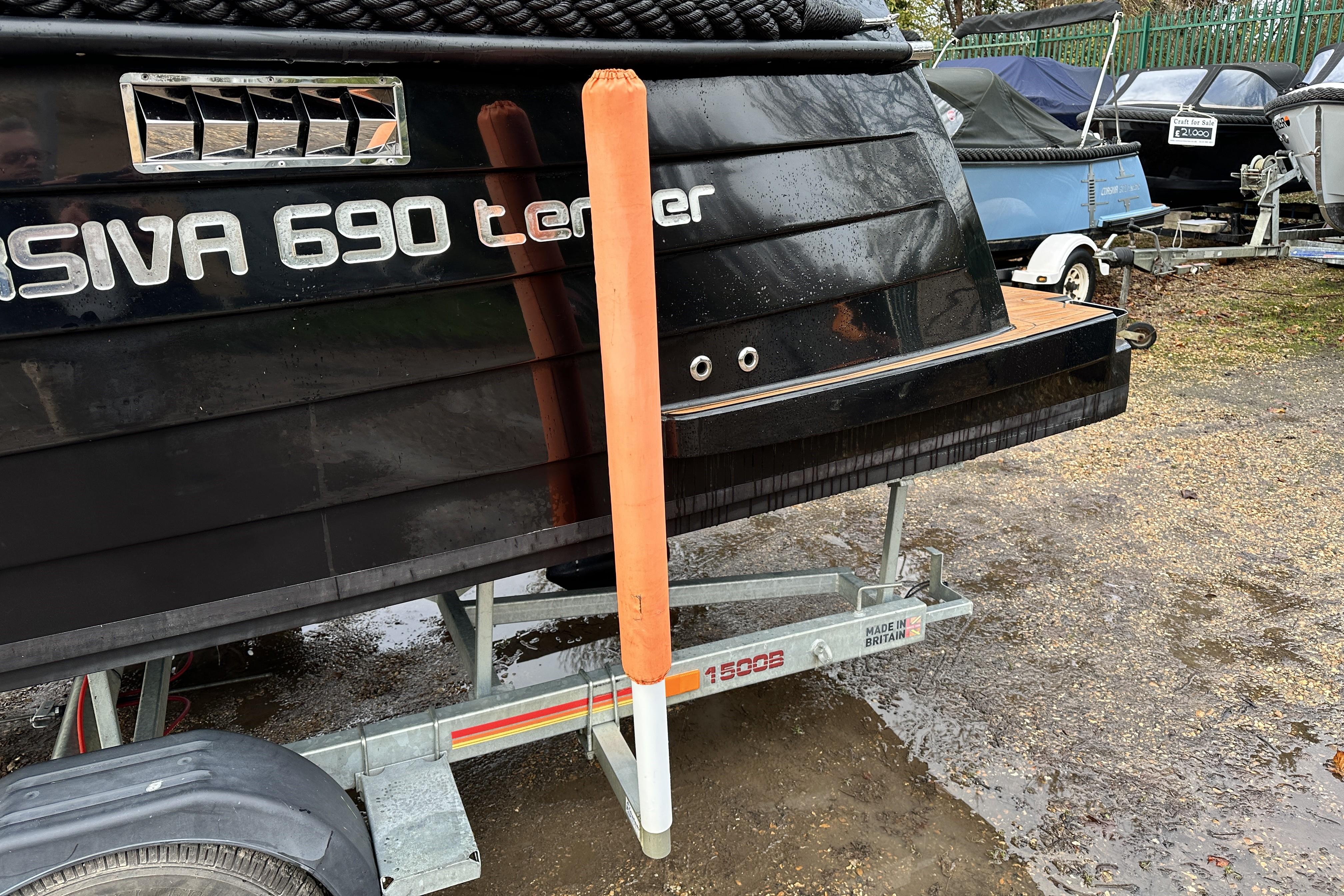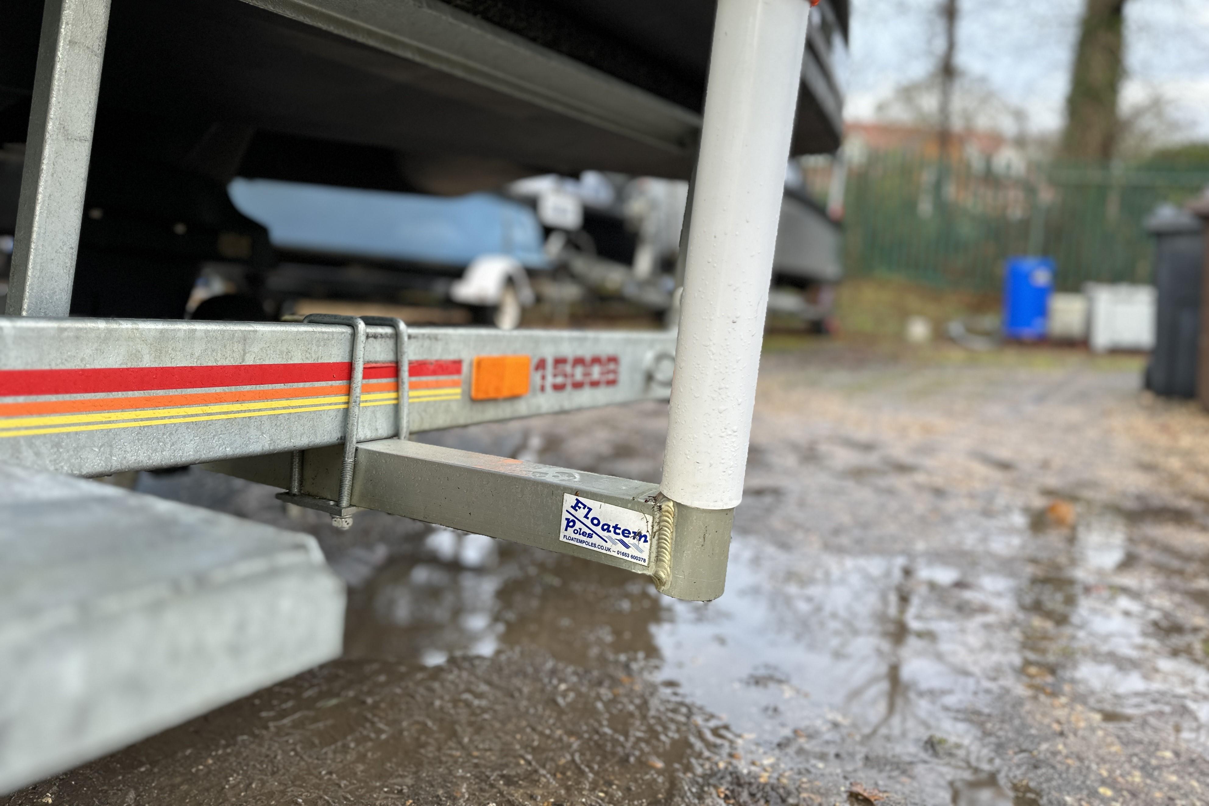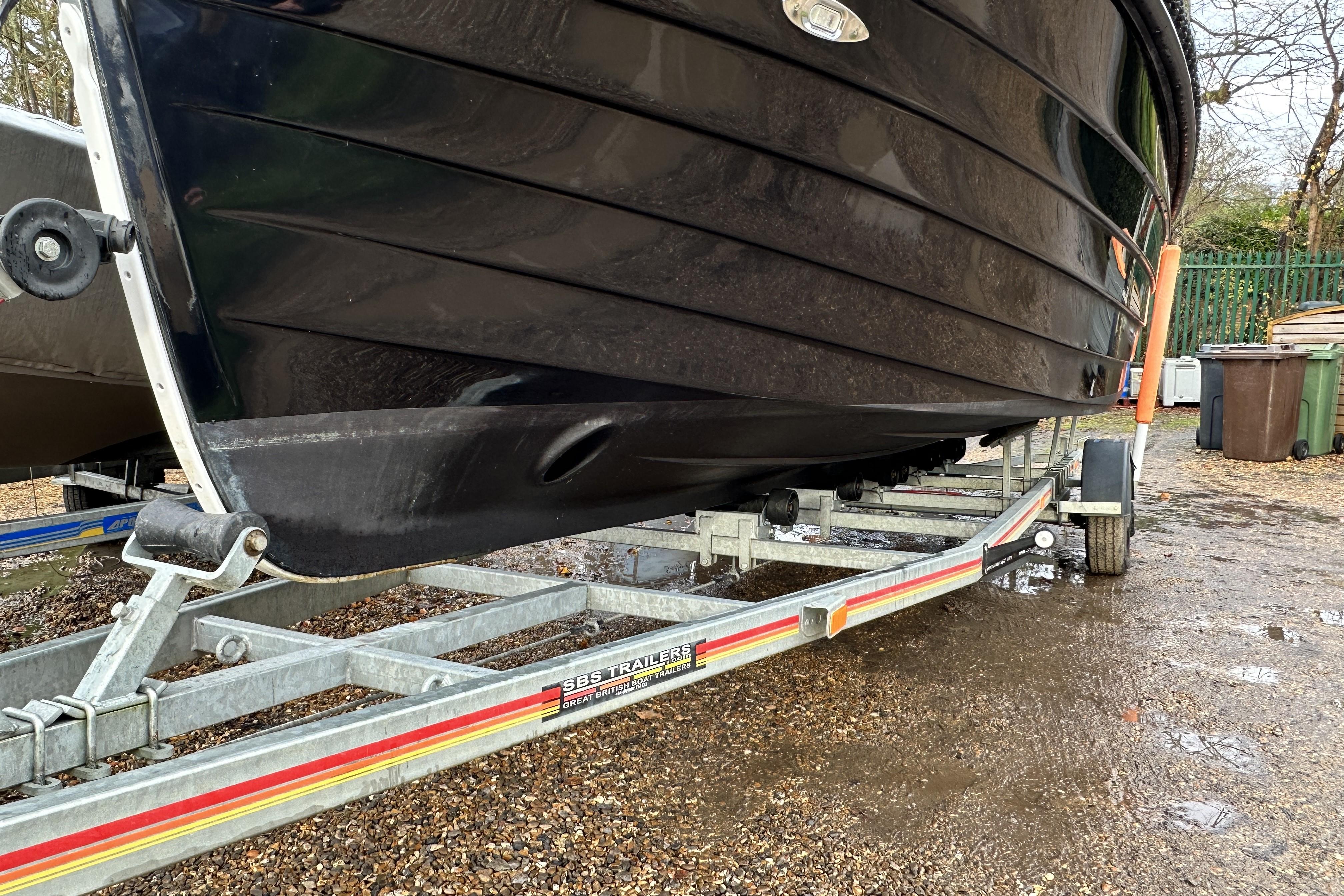 - SBS Trailer (R2/1500BV) with lighting board and 'V' shaped rear chassis to accommodate outboard shaft.
