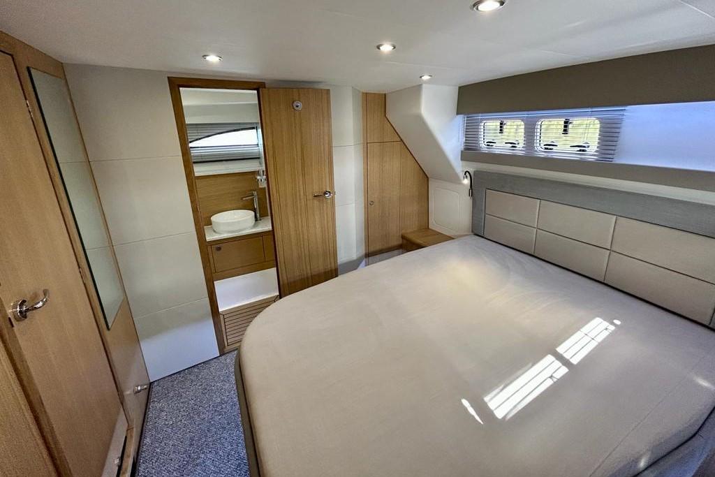 Aft Cabin - With large island berth, portside drawer unit, and 2 x hanging lockers. En-suite head with sea toilet to holding tank, vanity unit with ceramic counter top basin and tall mixer tap, separate shower compartment with bi-fold door.