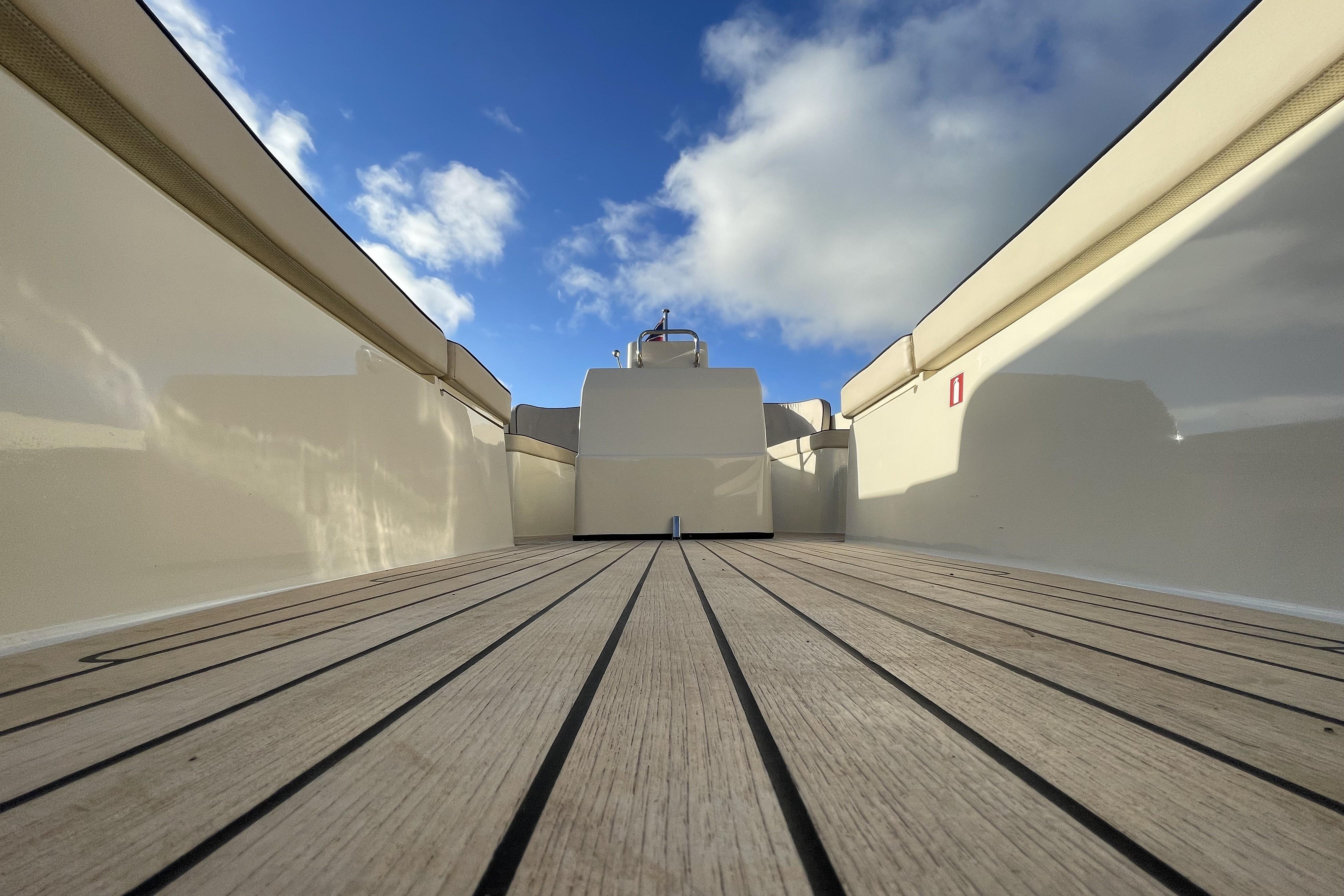 - Solid teak cockpit floor