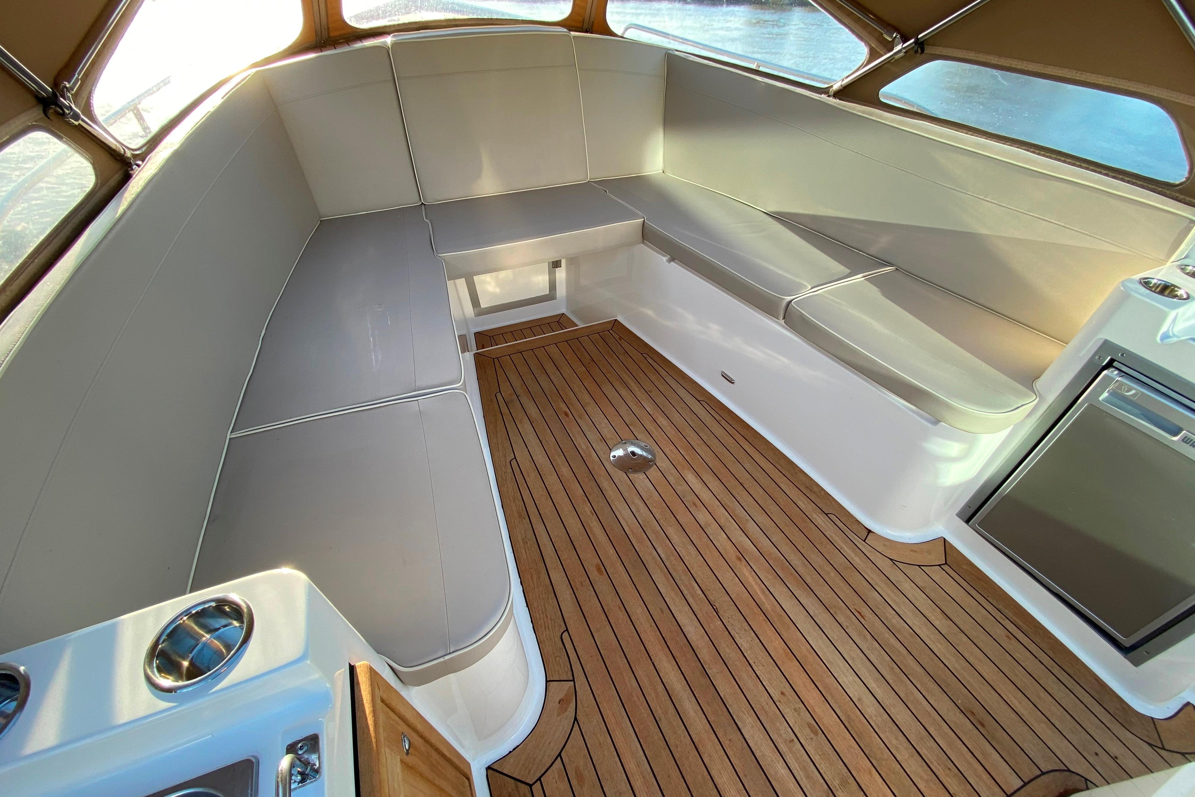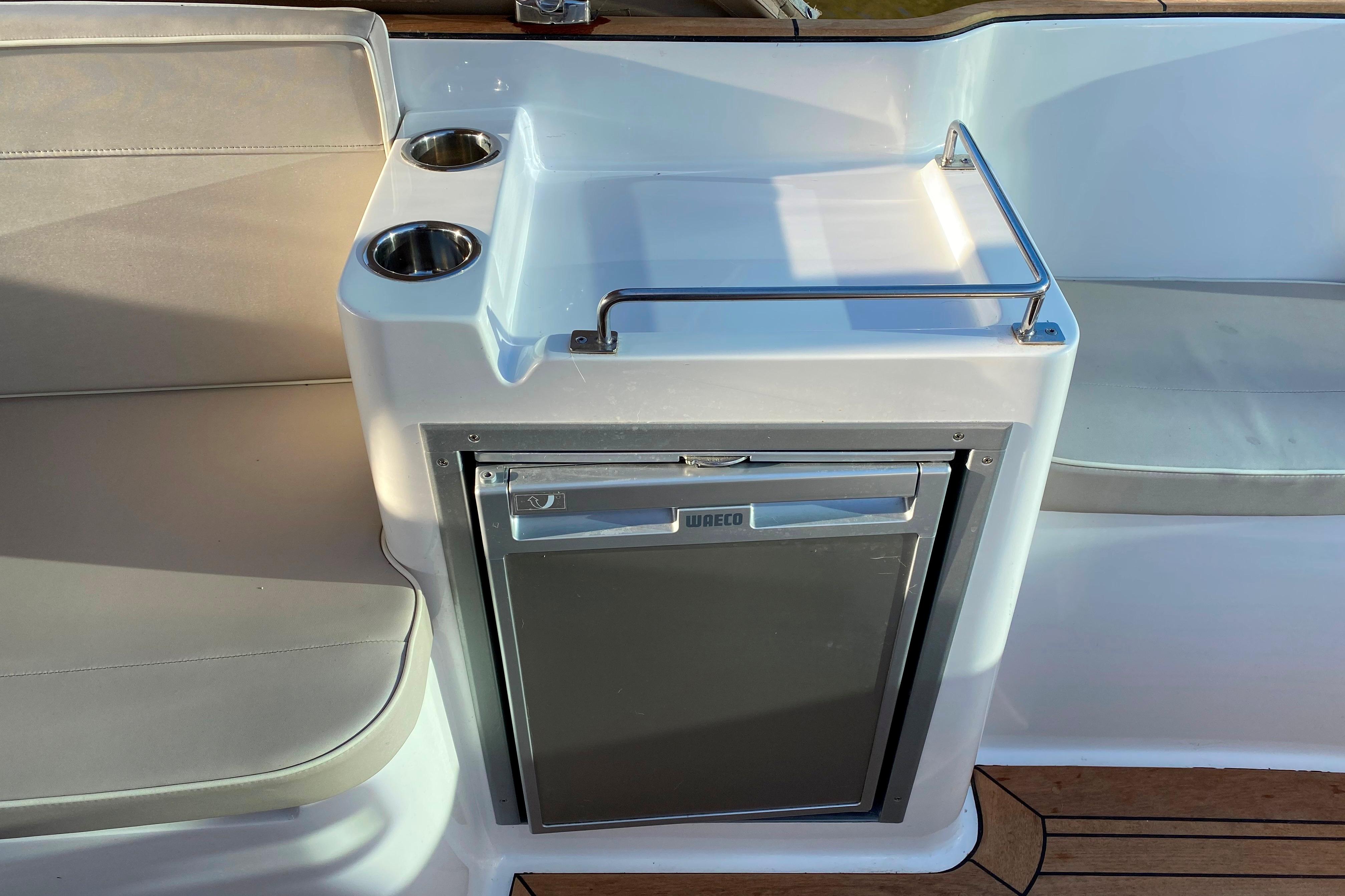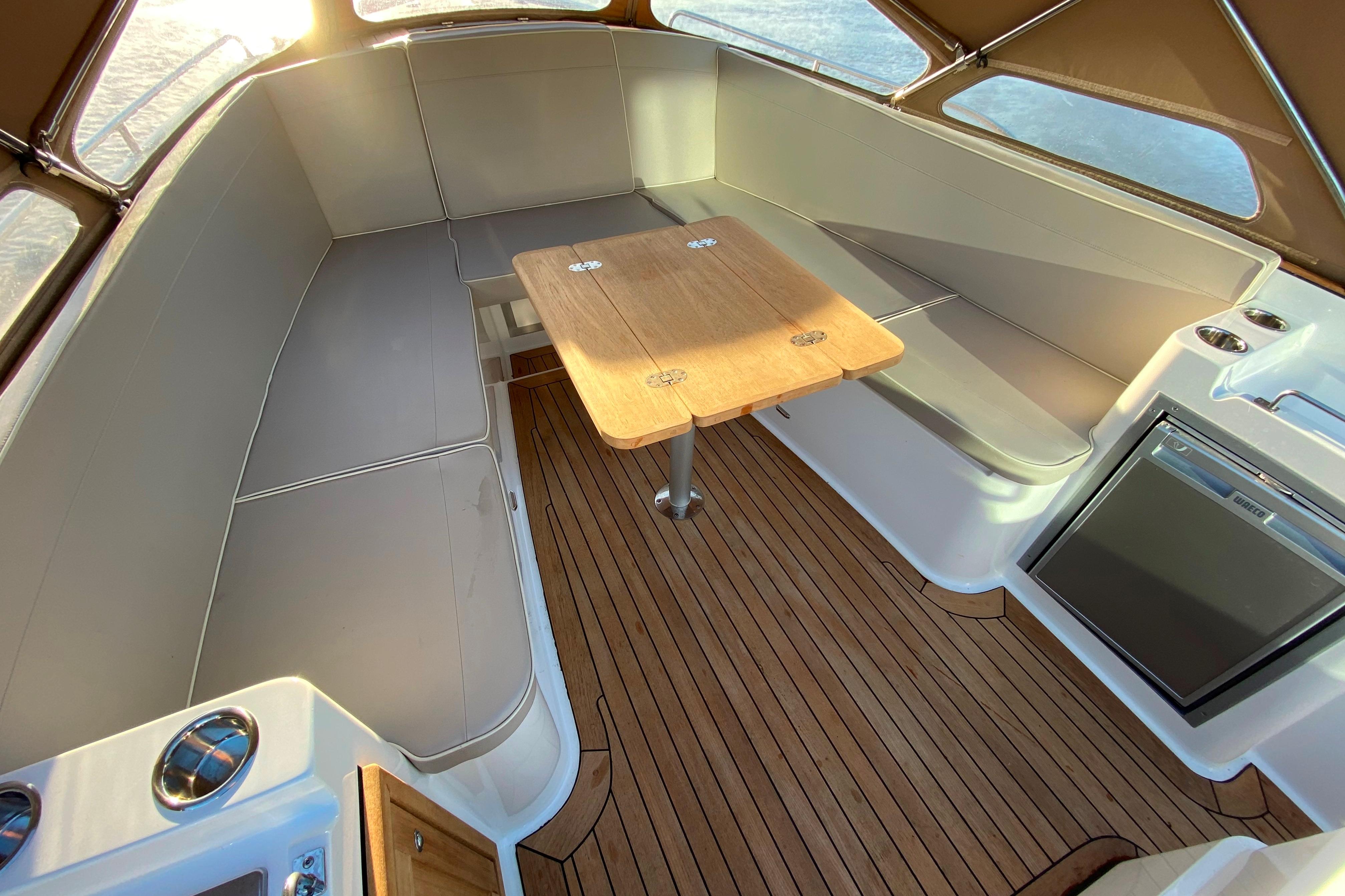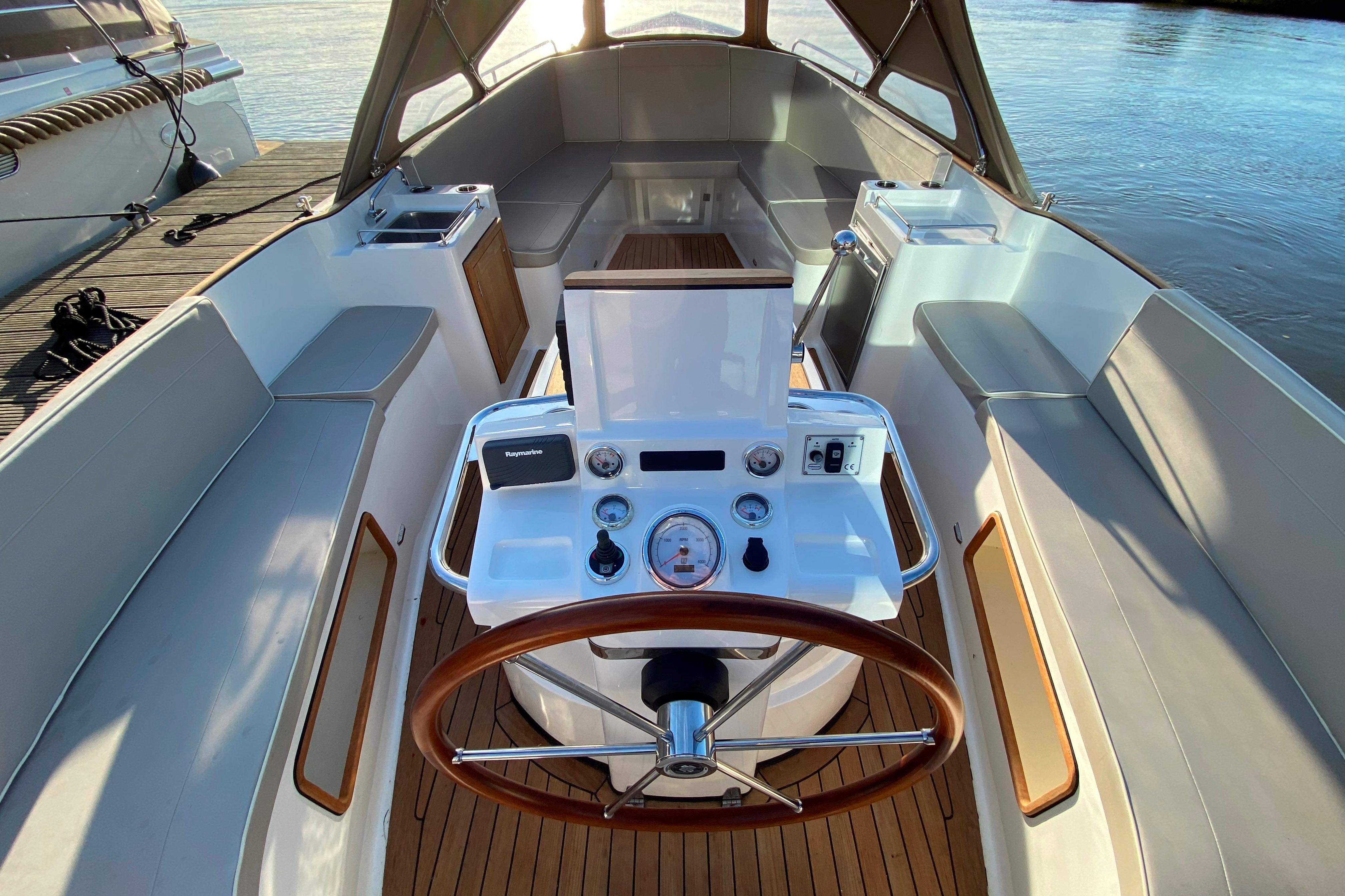 - Bimini sun cover with 2m headroom, frame and connector piece to spray hood, side & rear panels with windows