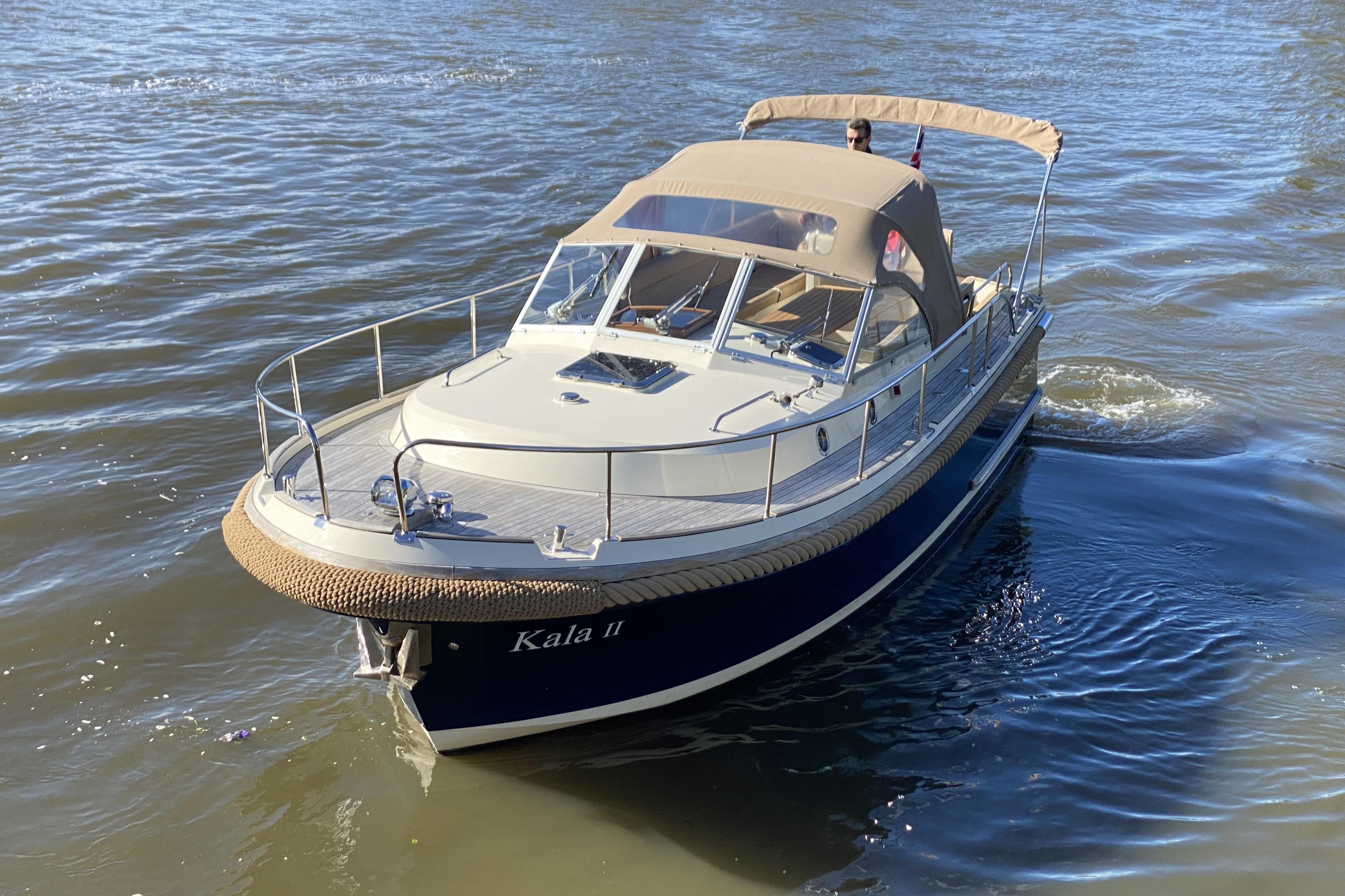 Hull construction - Hand lay-up fibreglass hull. Stainless steel air inlets for engine compartment, stainless steel exhaust, teak frame around swimming platform, solid teak swimming platform, anti-fouling with waterline, rope fender with puddening to bow.