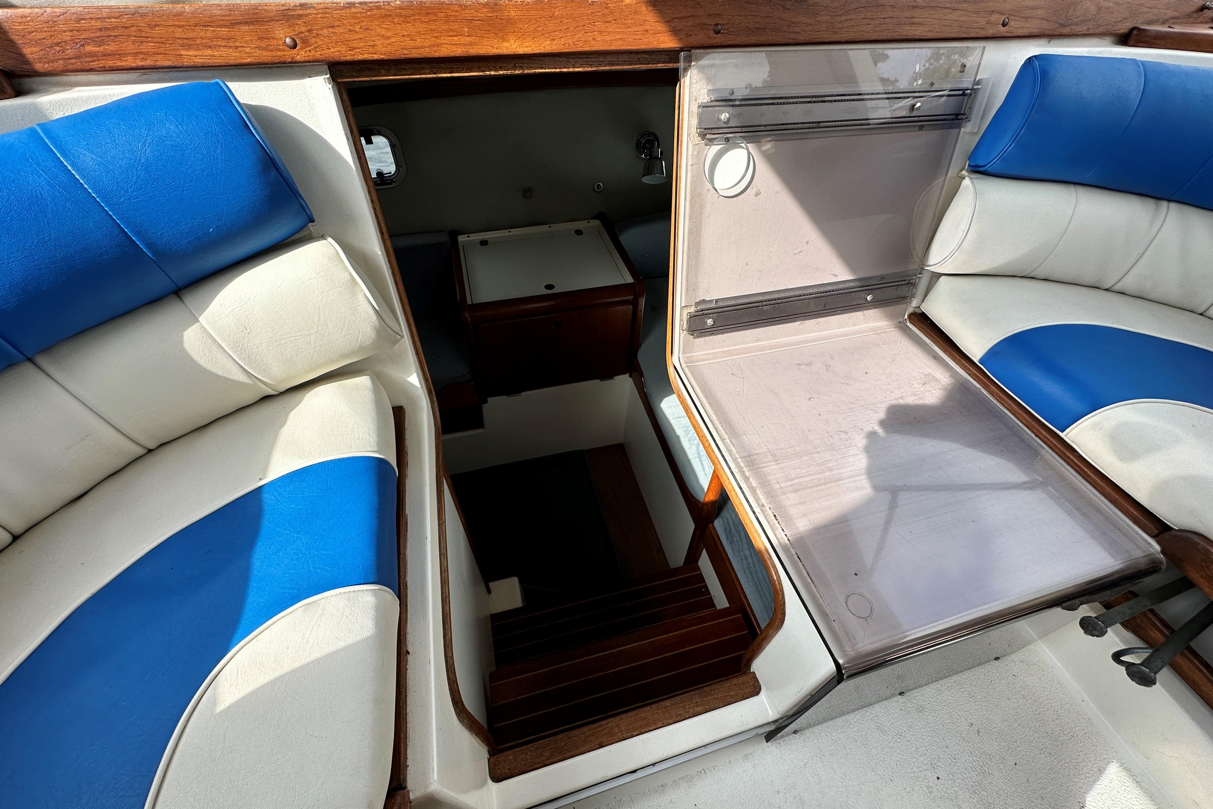 Steps down from cockpit through sunpad